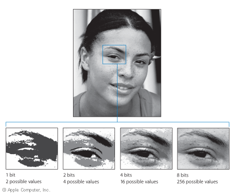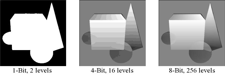 1 bit image is either 0 or 1, 2 possible shades of gray tones